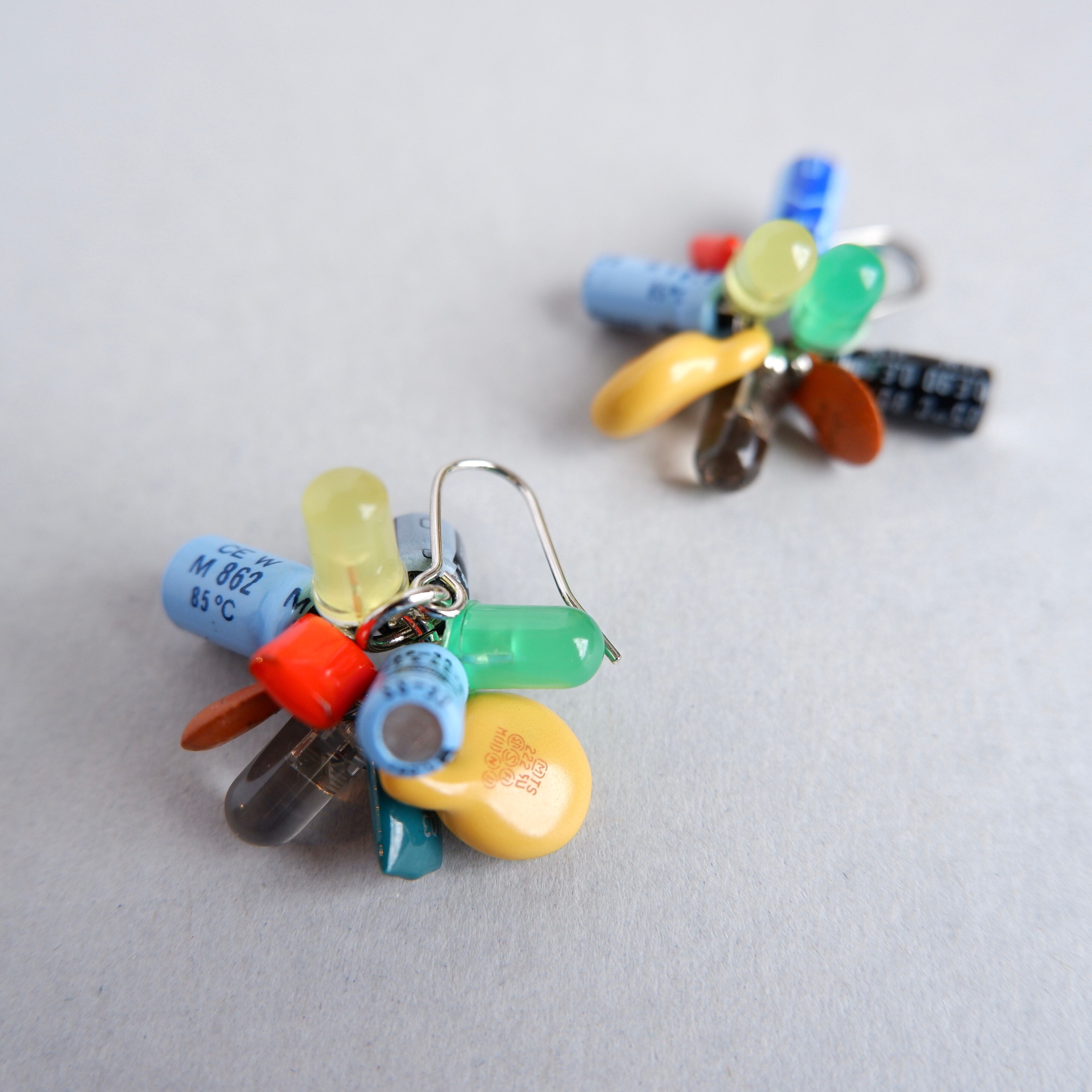 不要になった電子部品を組み合わせて作った、一点もののお花をイメージしたピアスです✳︎
