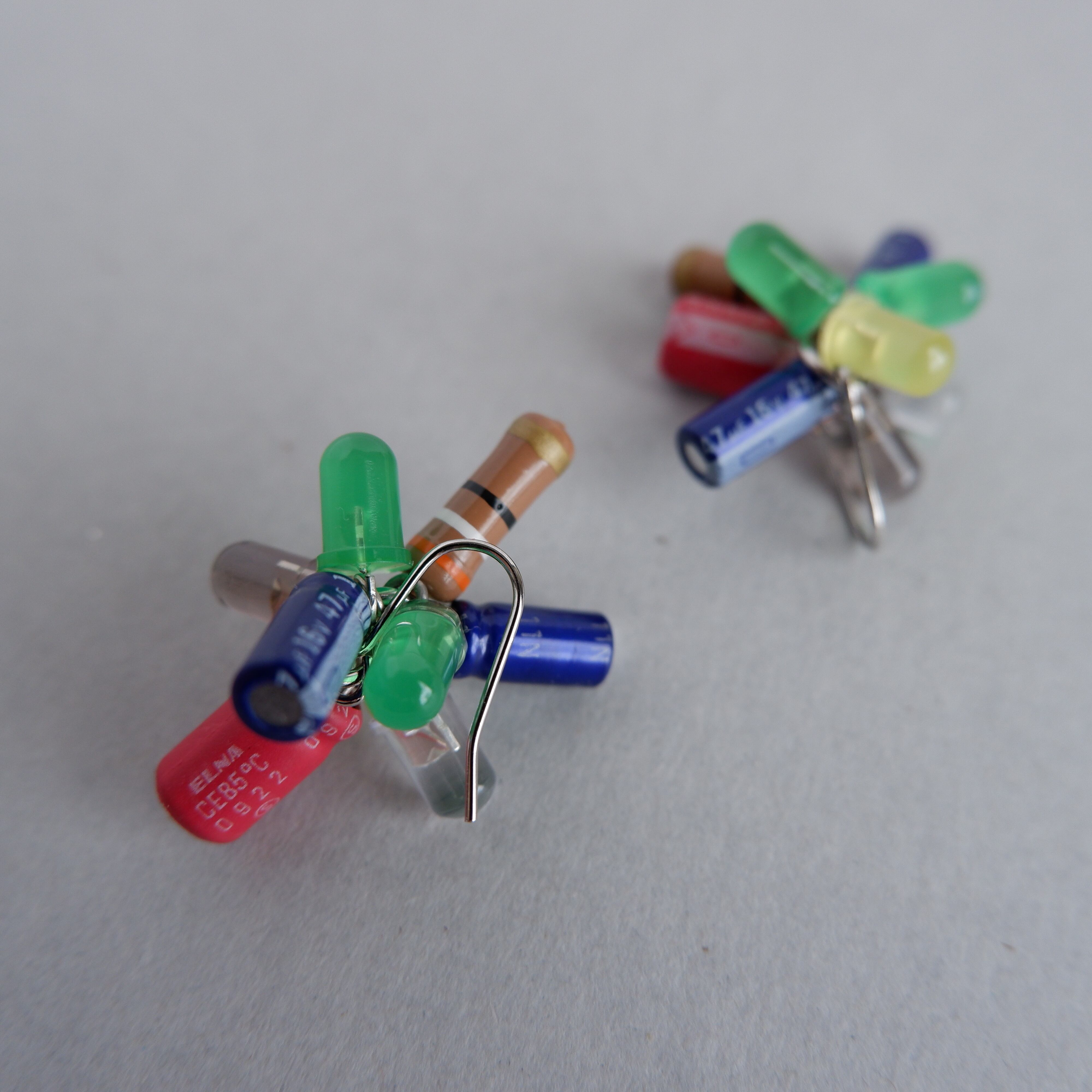 カラフルな電子部品を組み合わせて作った、お花をイメージしたピアスです✳︎