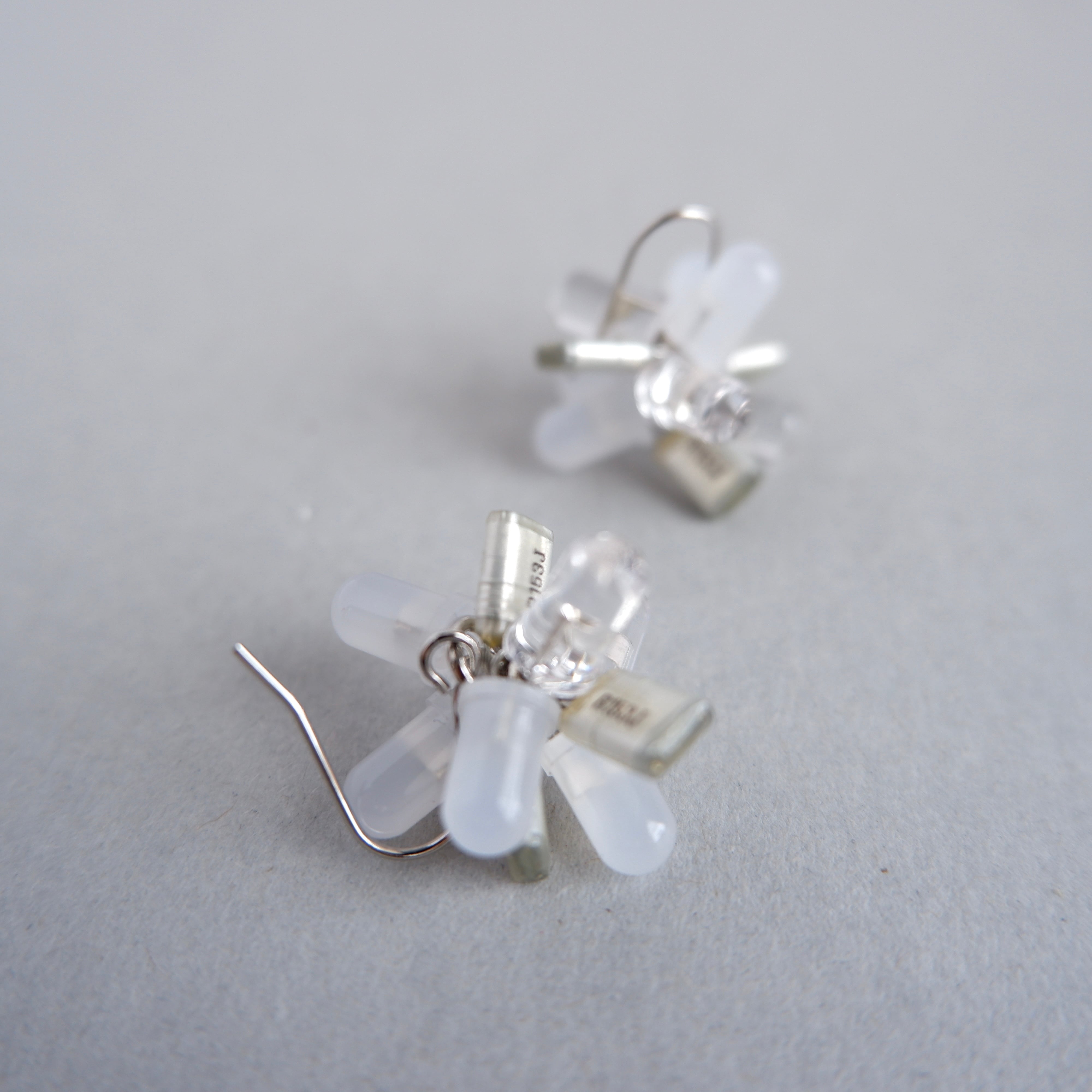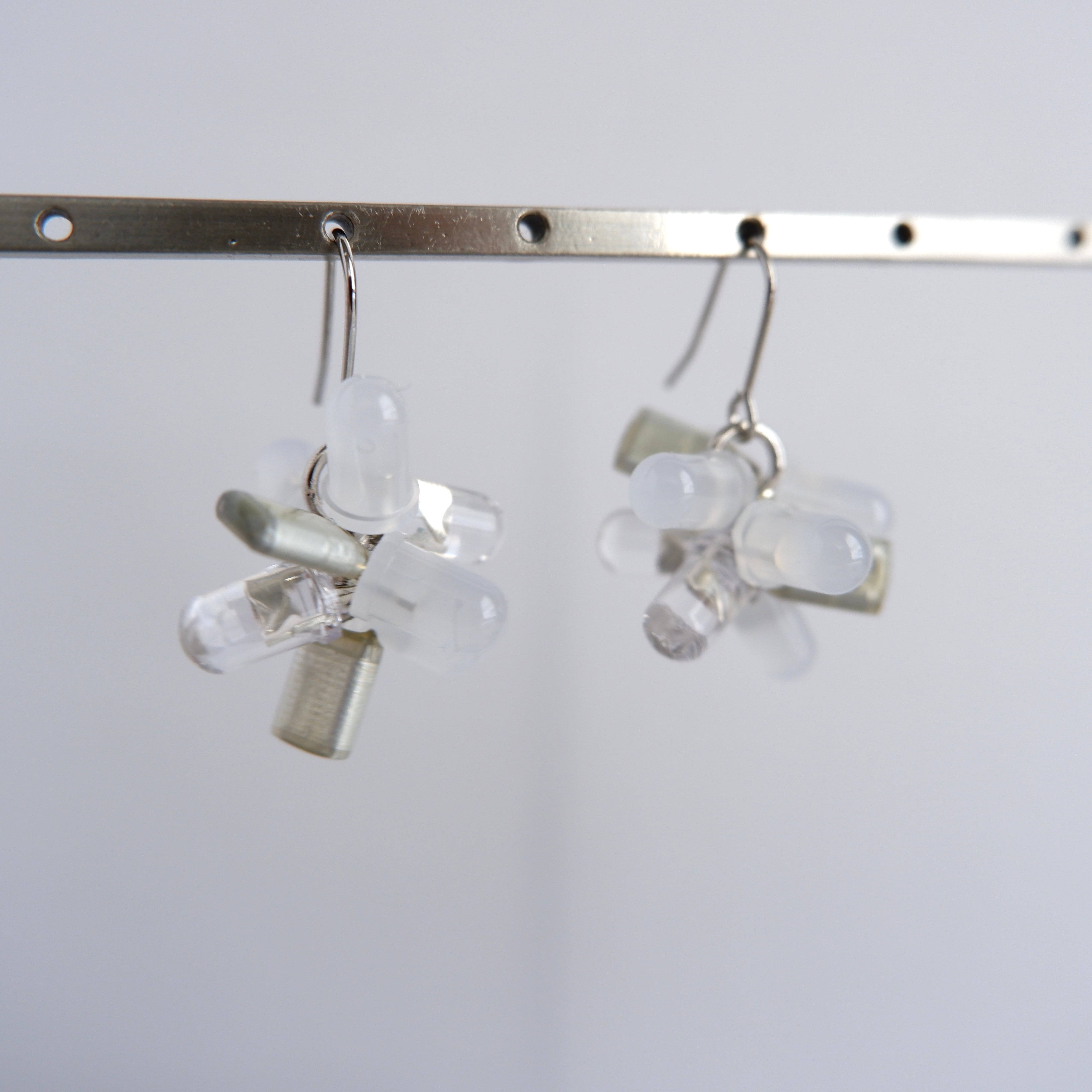 電子部品を組み合わせて作った、白いお花をイメージしたピアスです✳︎