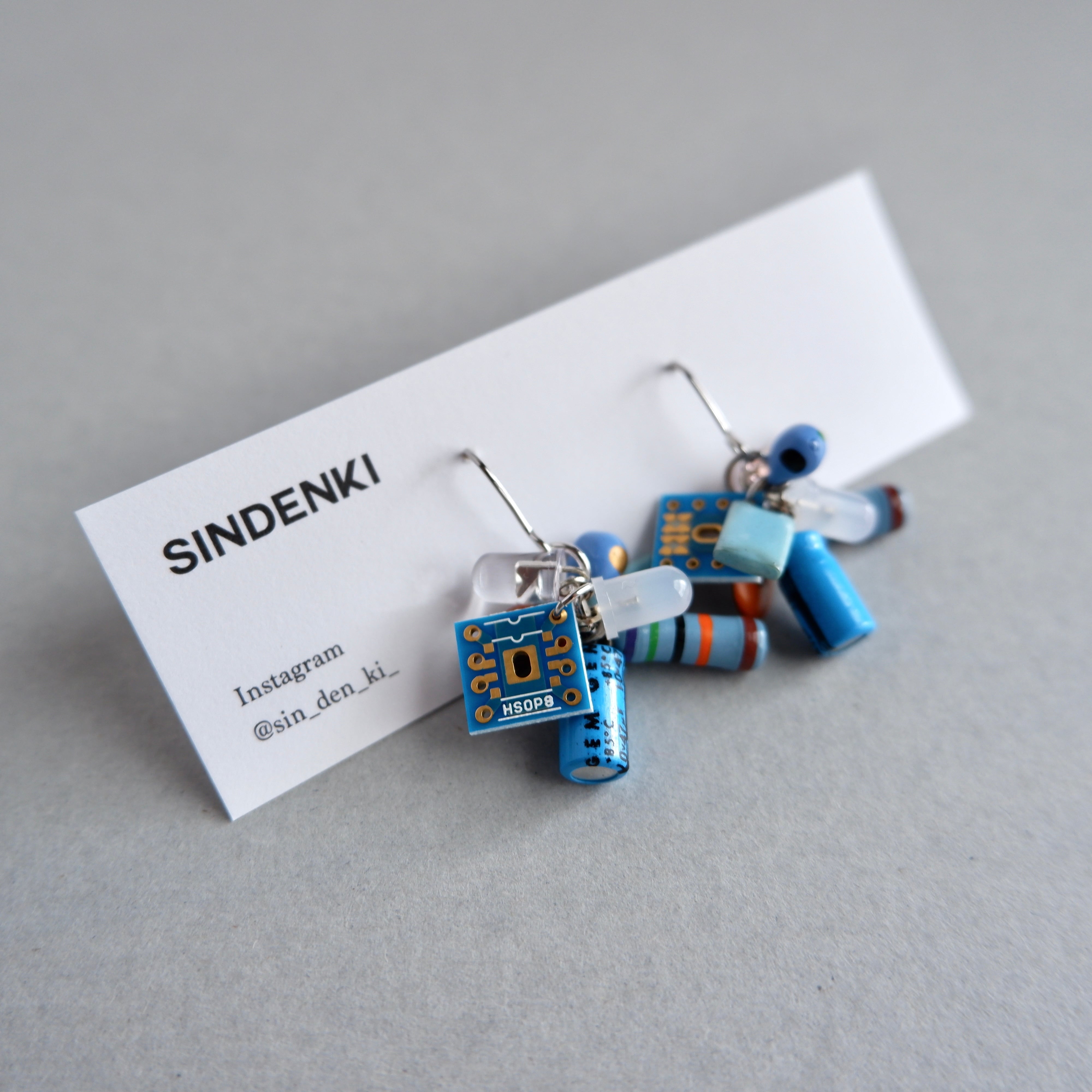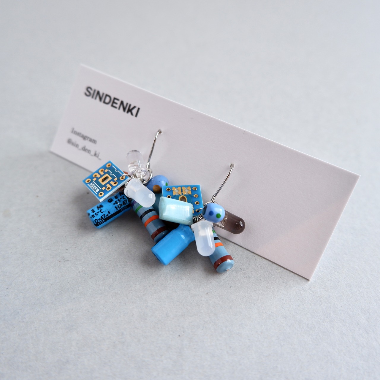 カラフルな電子部品を組み合わせて作った、お花をイメージした一点もののピアスです✳︎