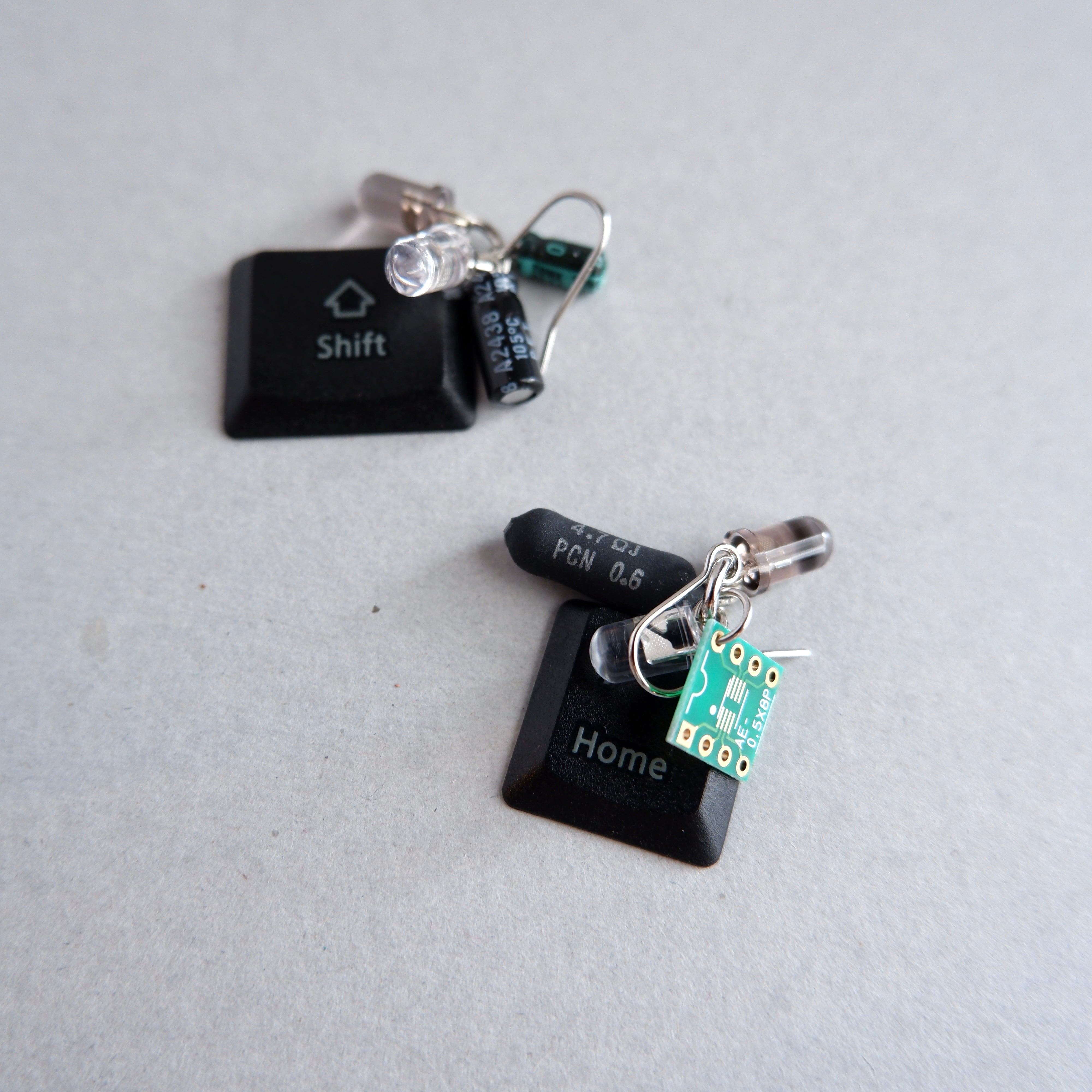 キーボードパーツと電子部品をアップサイクルして制作した一点もののピアスです✳︎