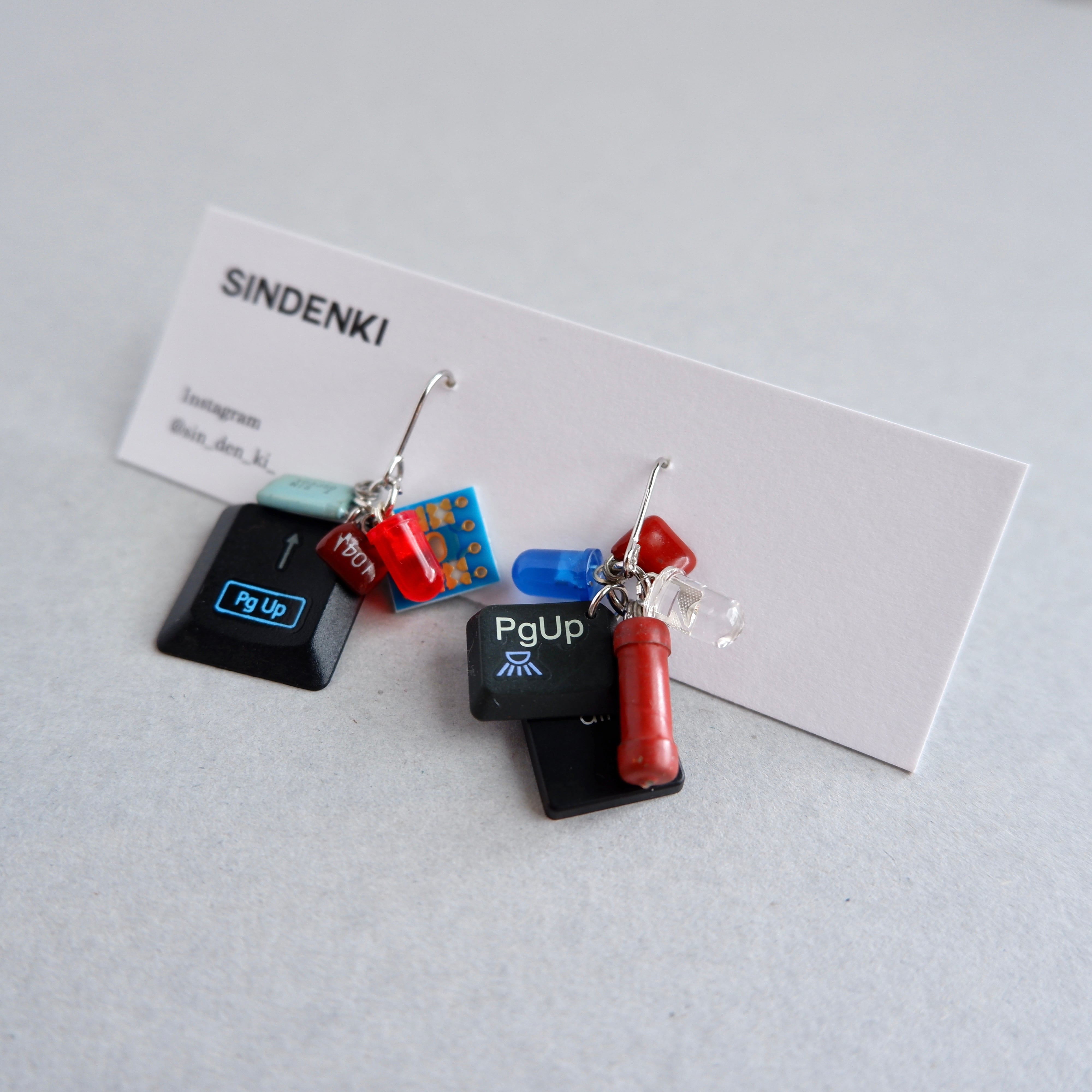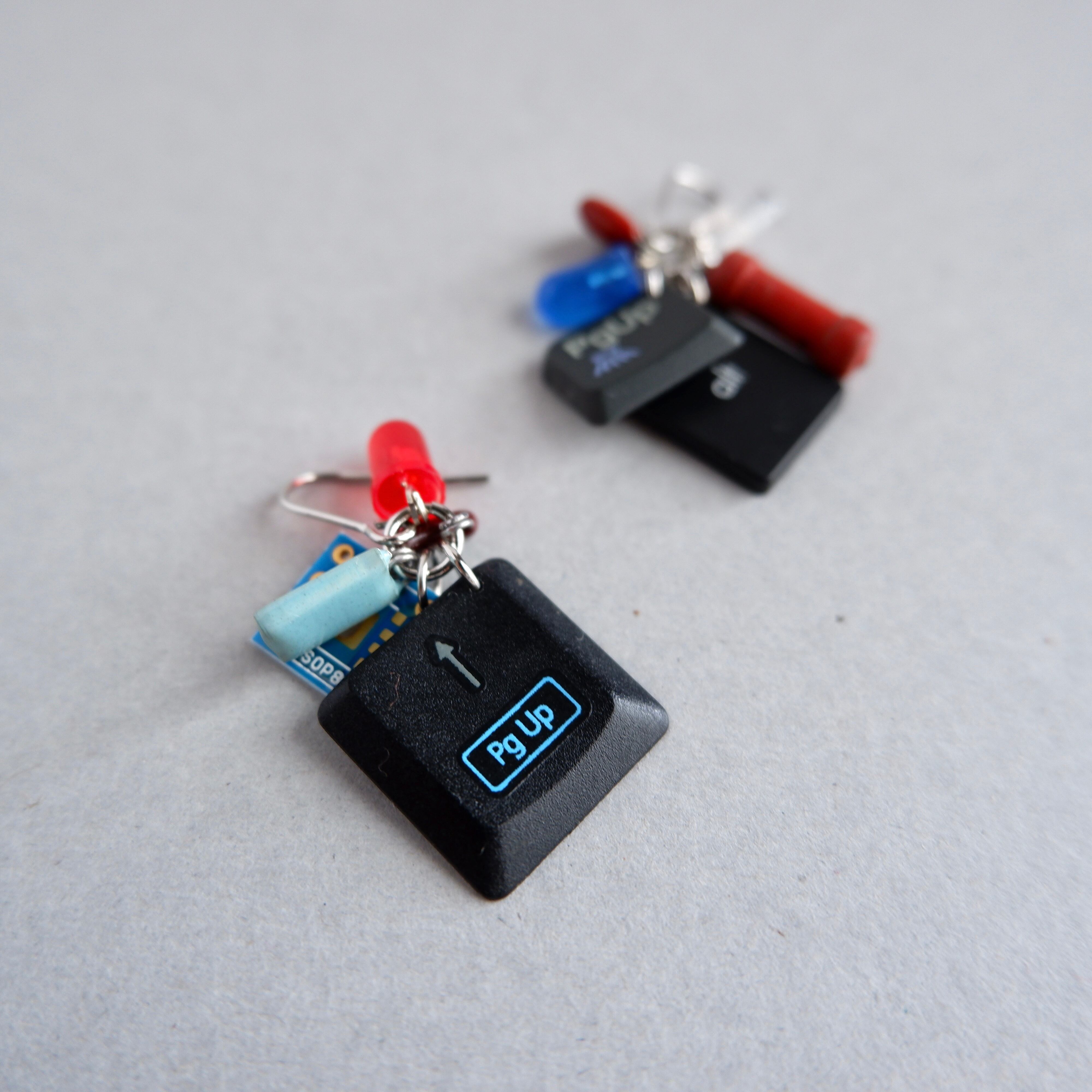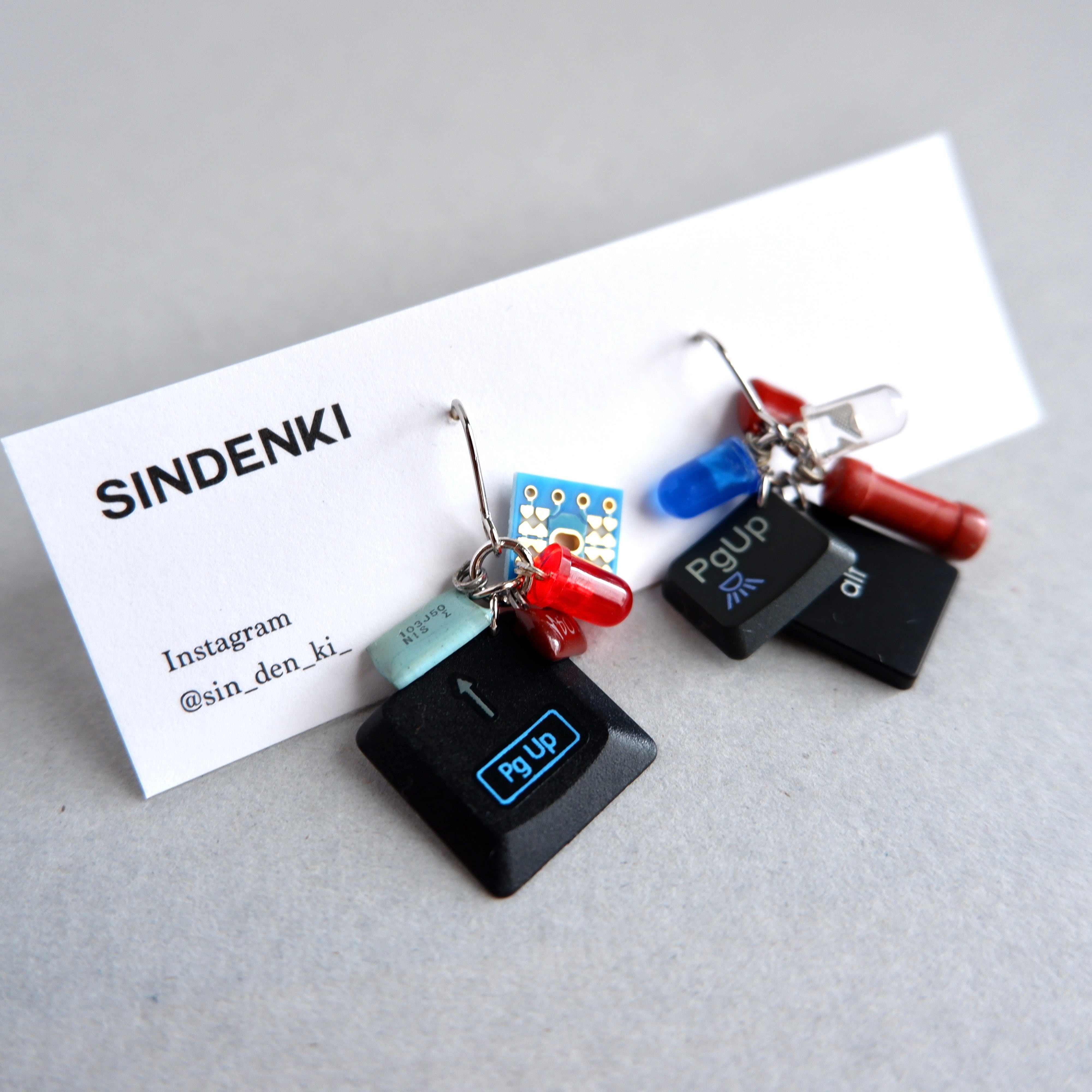 キーボードパーツと電子部品をアップサイクルして制作した一点もののピアスです✳︎