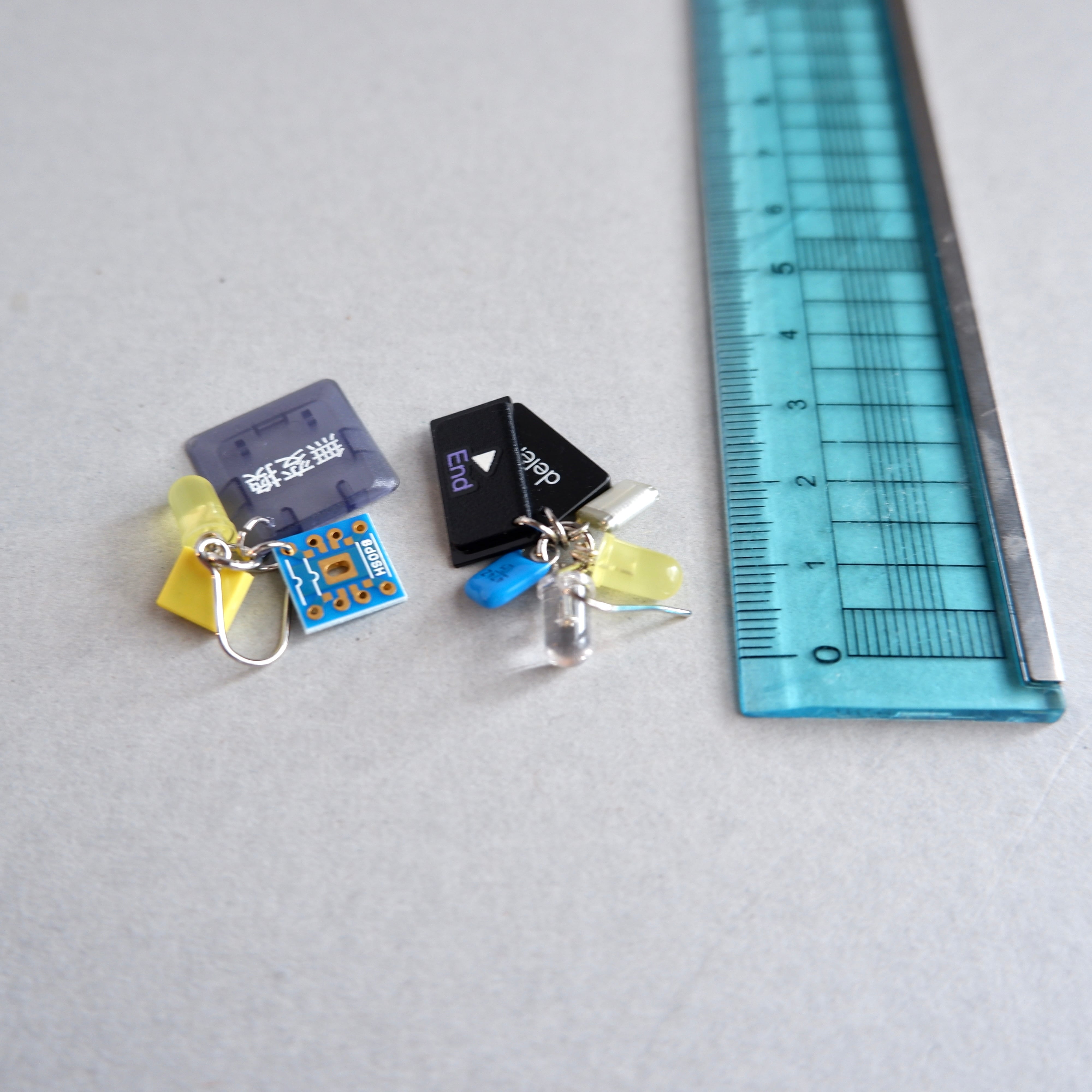 キーボードパーツと電子部品をアップサイクルして制作した一点もののピアスです✳︎