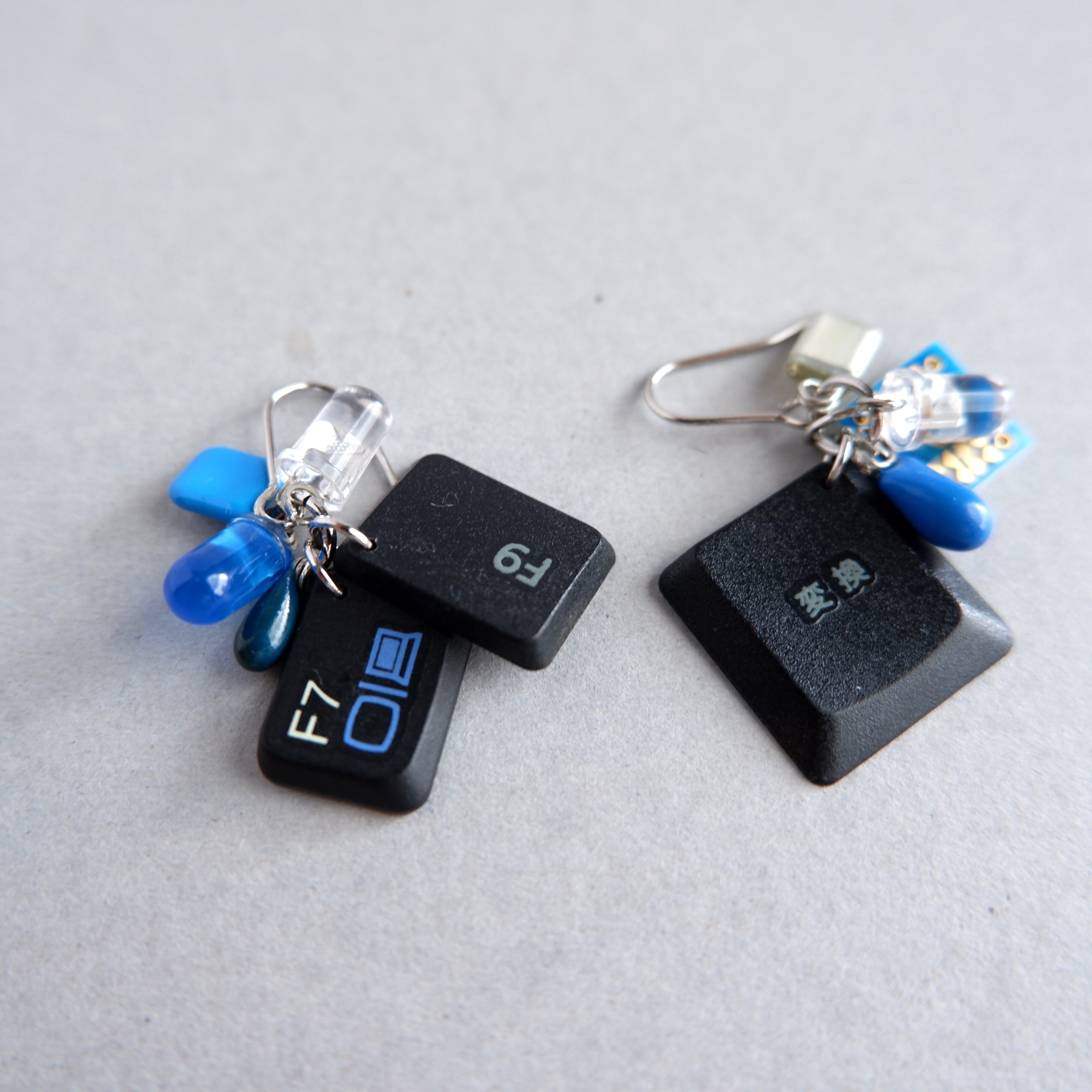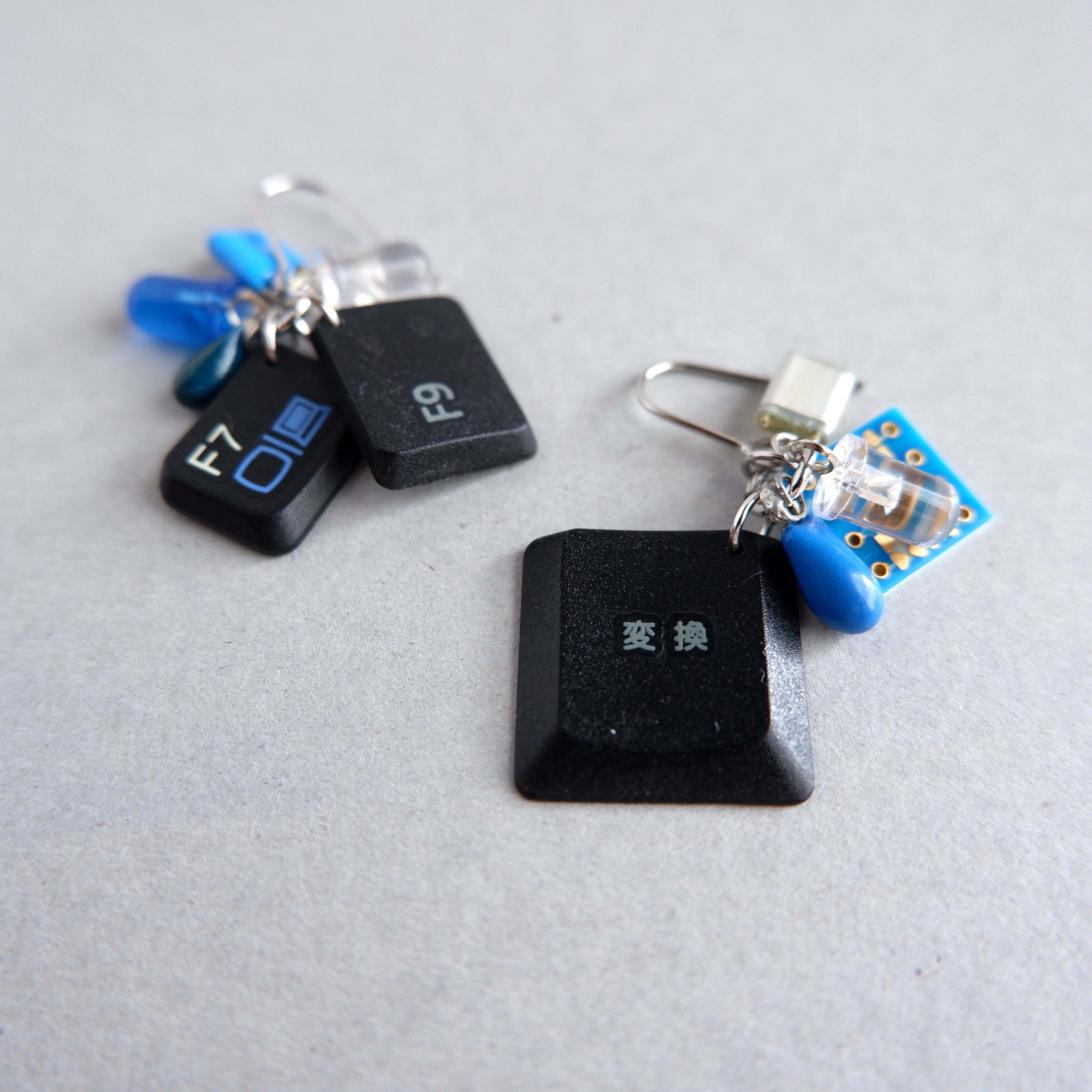 キーボードパーツと電子部品をアップサイクルして制作した一点もののピアスです✳︎
