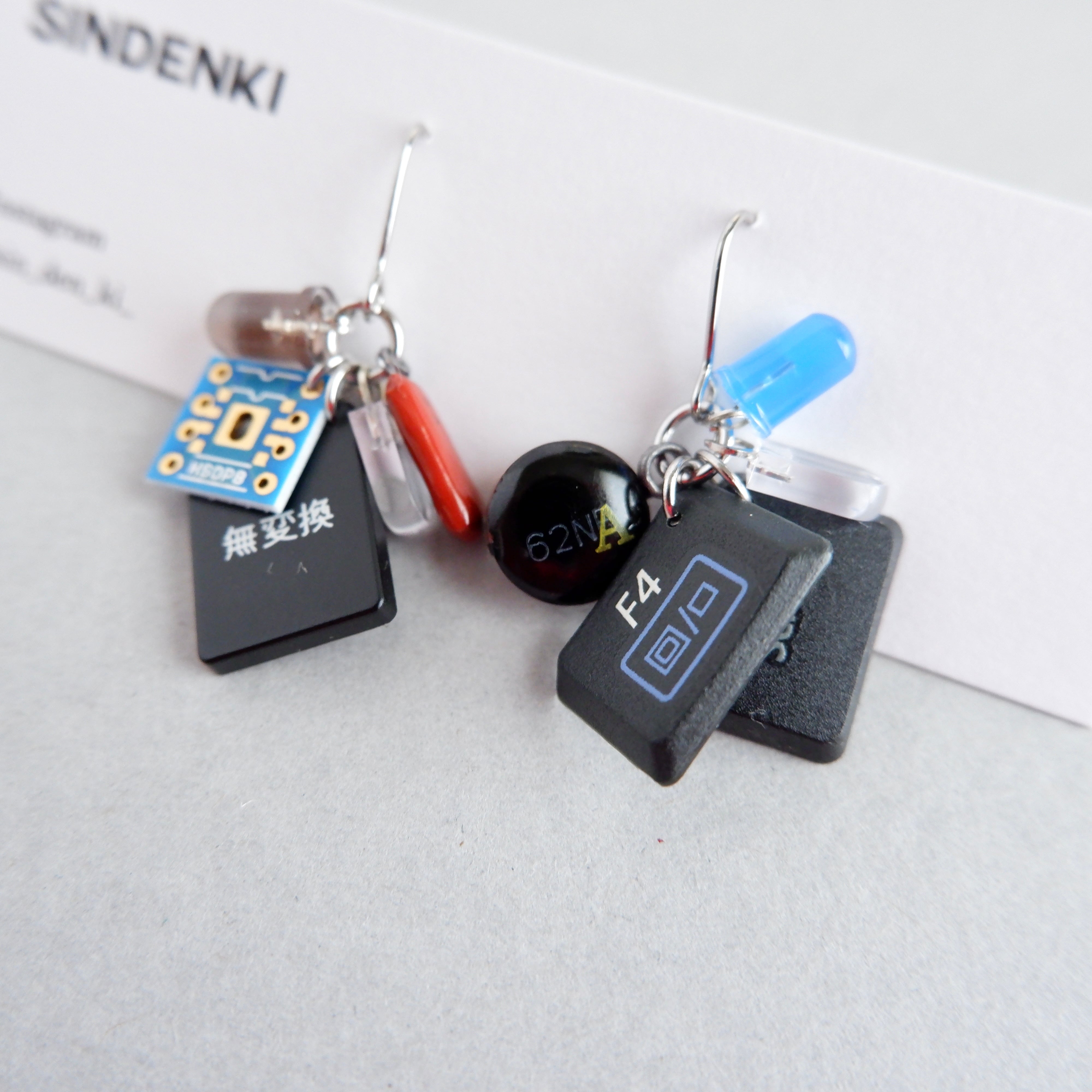キーボードパーツと電子部品をアップサイクルして制作した一点もののピアスです✳︎