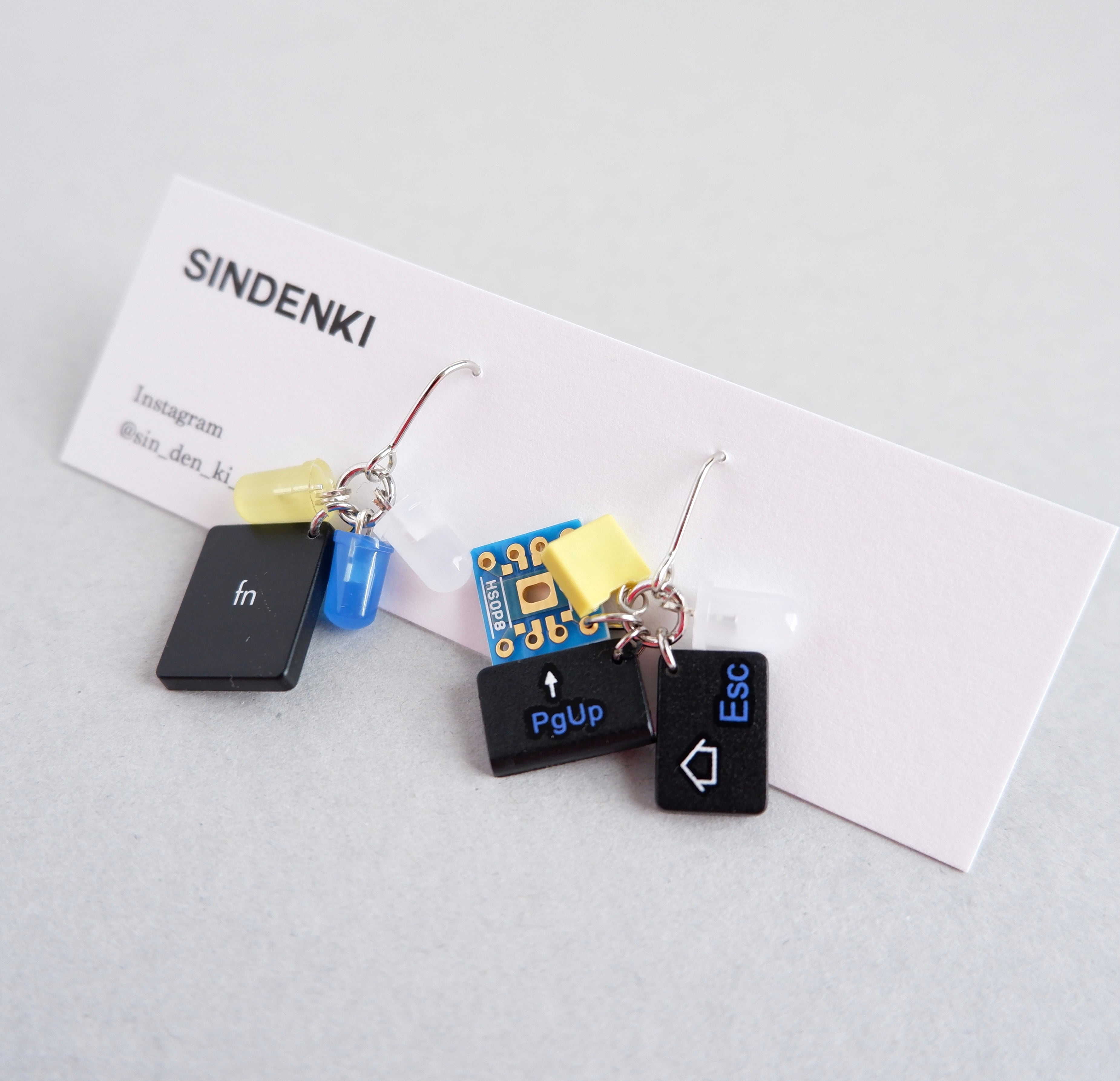 キーボードパーツと電子部品をアップサイクルして制作した一点もののピアスです✳︎